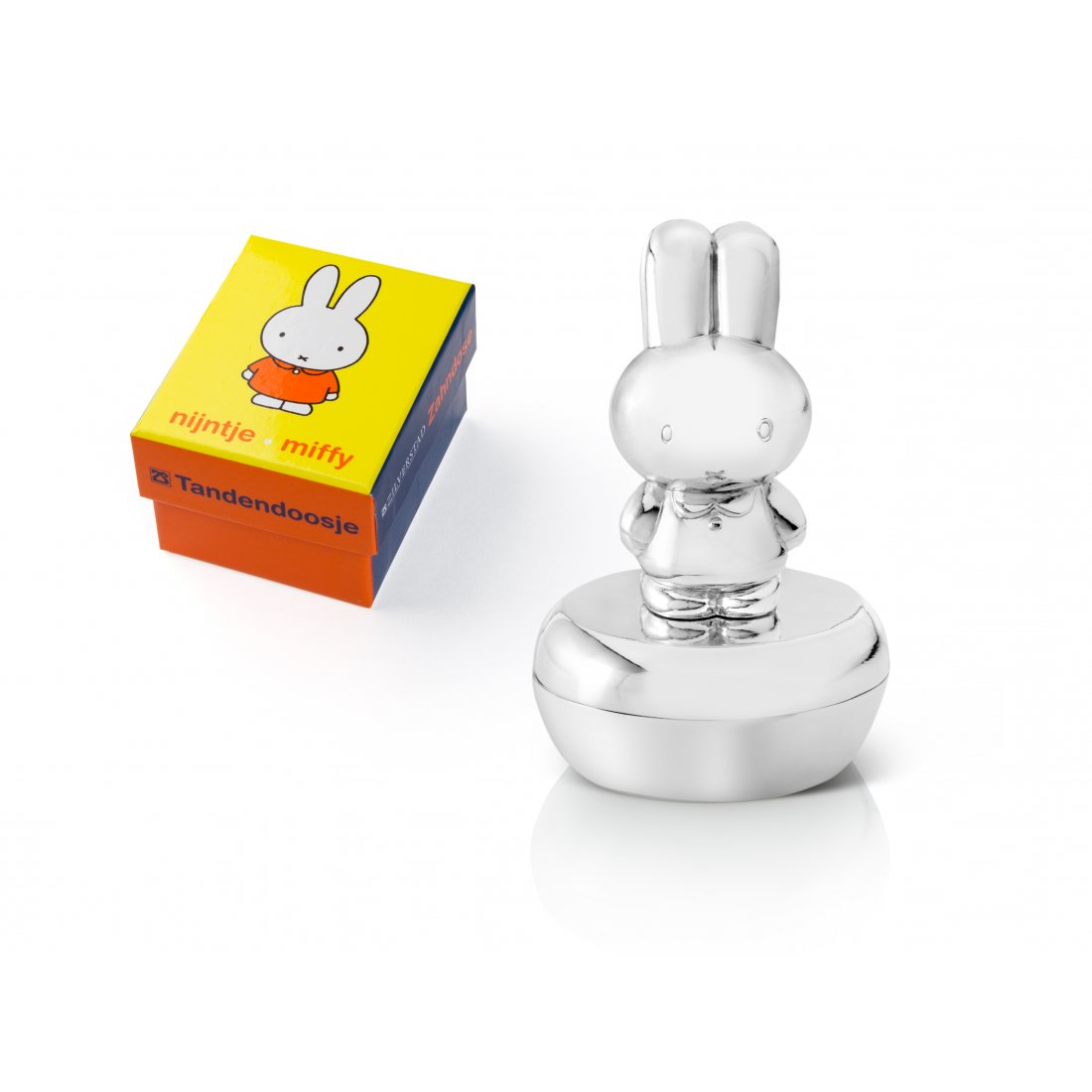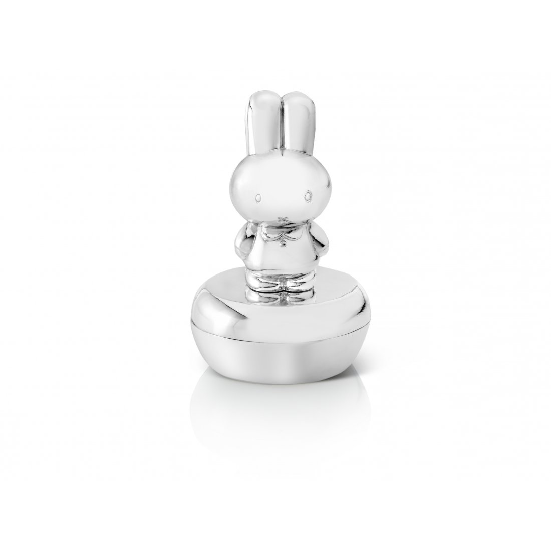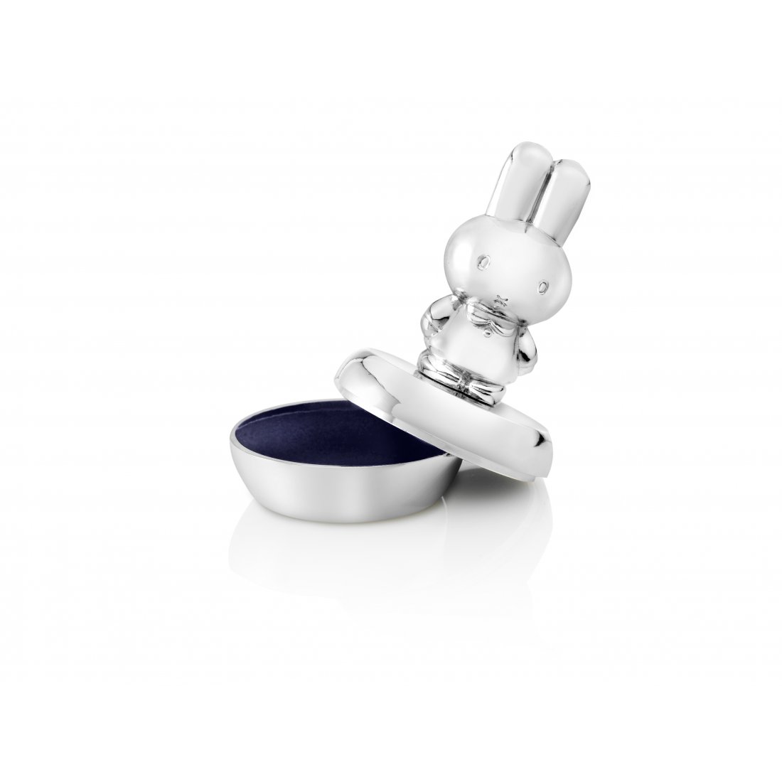 Dit tanden/ haarlokdoosje van Nijntje is verzilverd en is blauw velours bekleed van binnen.