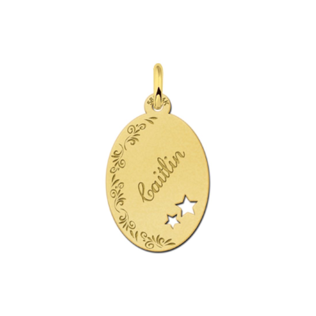 Gouden ovale hanger met naam, bloemenrand en 2 sterren