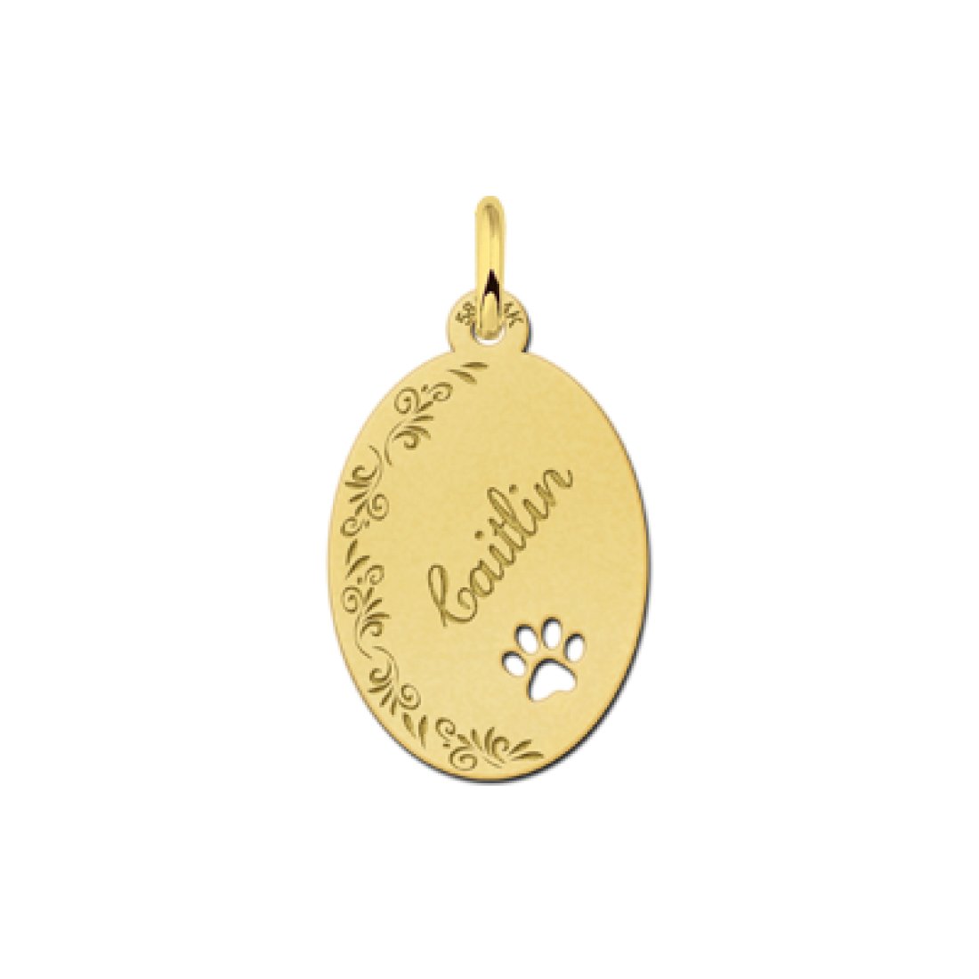 Gouden hangertje met je naam met sierrand en een liefdeshart