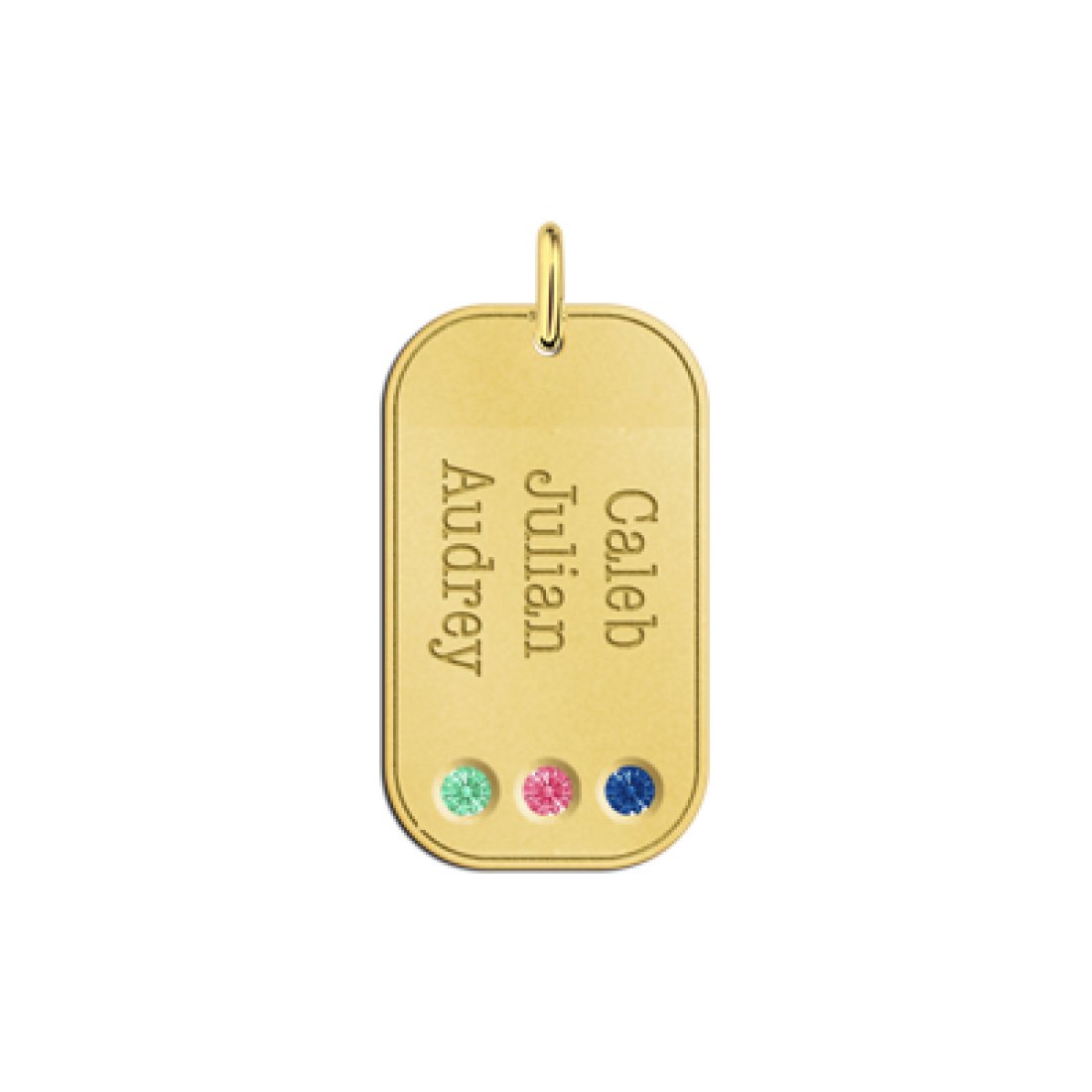 Gouden hanger met drie namen en geboortestenen van zirkonia