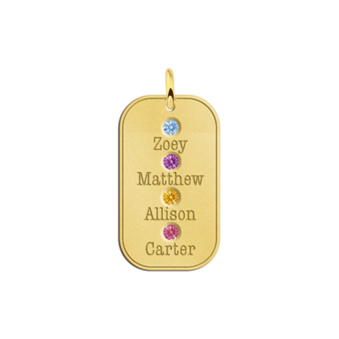 Gouden hanger met vier namen en geboortestenen van zirkonia