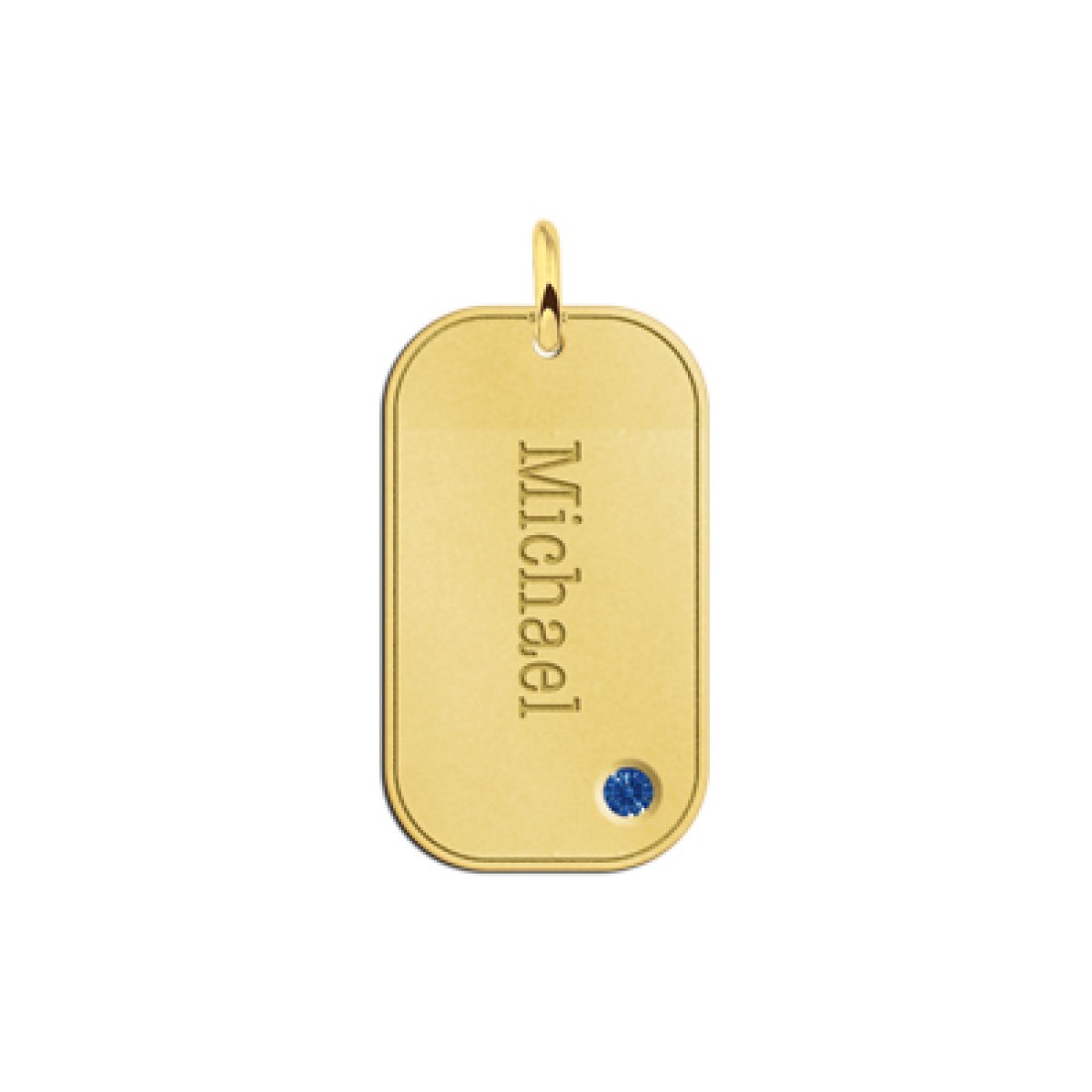 Gouden rechthoekige hanger met naamgravure en geboortesteen
