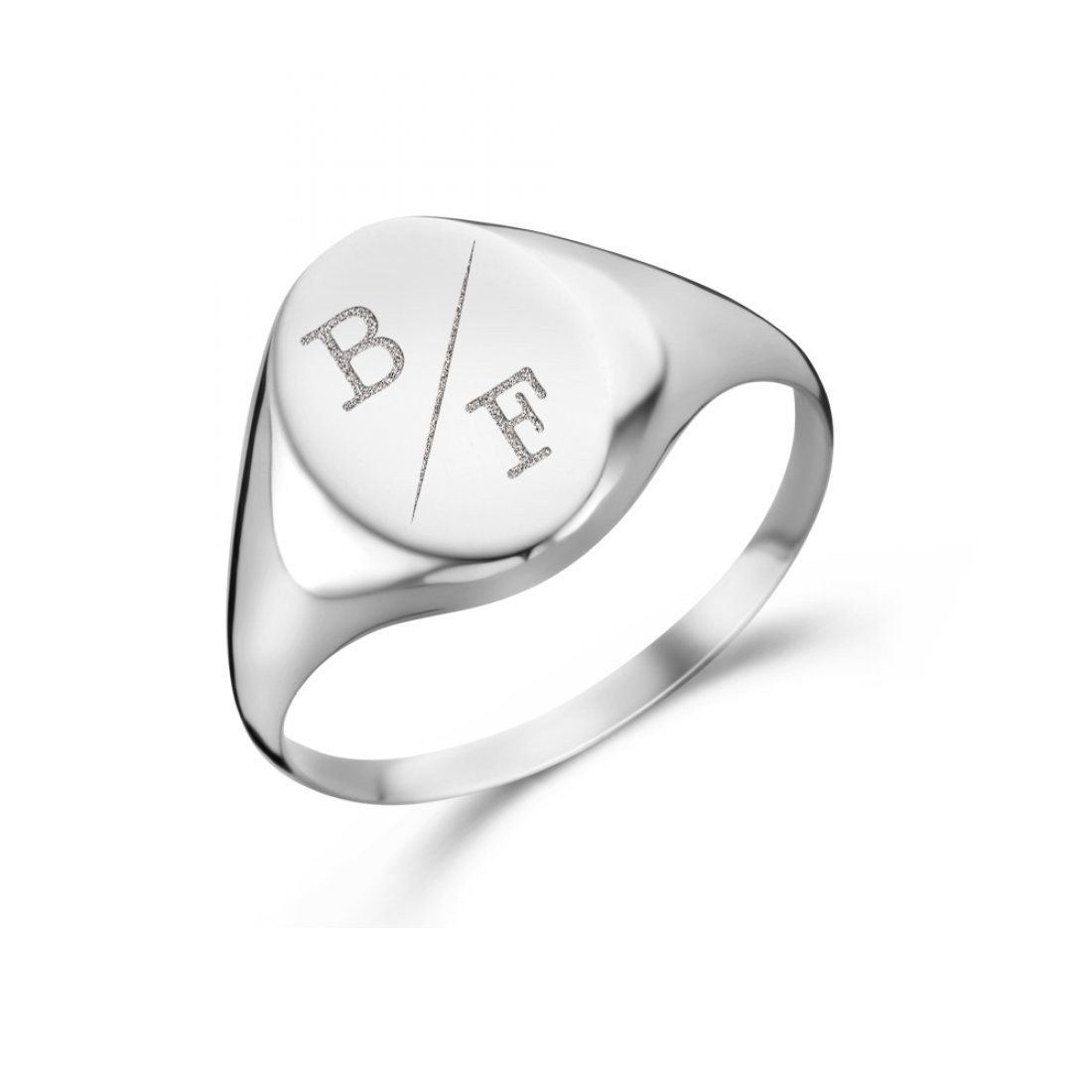 Zilveren ovaal zegelring met initialen