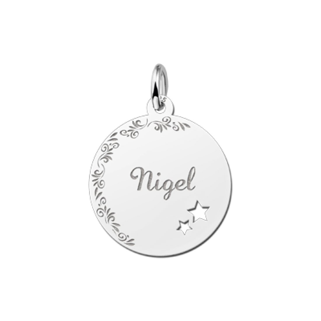 Plaatje met je naam, een bloemenrand en twee sterretjes